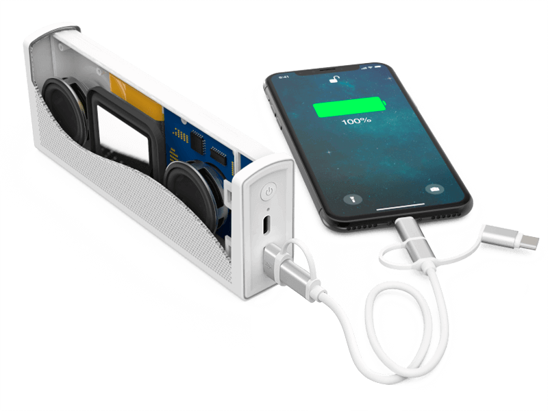 Con una qualità audio stereo impressionante, questo altoparlante Bluetooth® è molto più di un semplice materiale di marketing! Con fino a 10 ore di riproduzione di alta qualità, un microfono incorporato e una funzione di power bank, è anche un dispositivo audio di qualità e completamente funzionale che i vostri clienti ameranno.