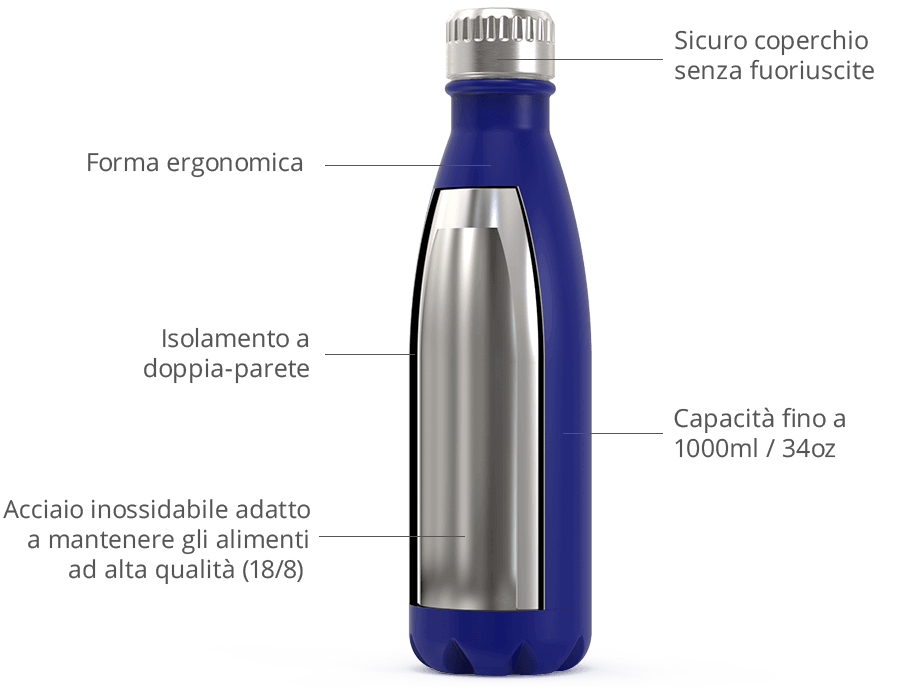 Offriamo inoltre una garanzia di 2 anni su tutte le bottiglie d'acqua in metallo e plastica a marchio.