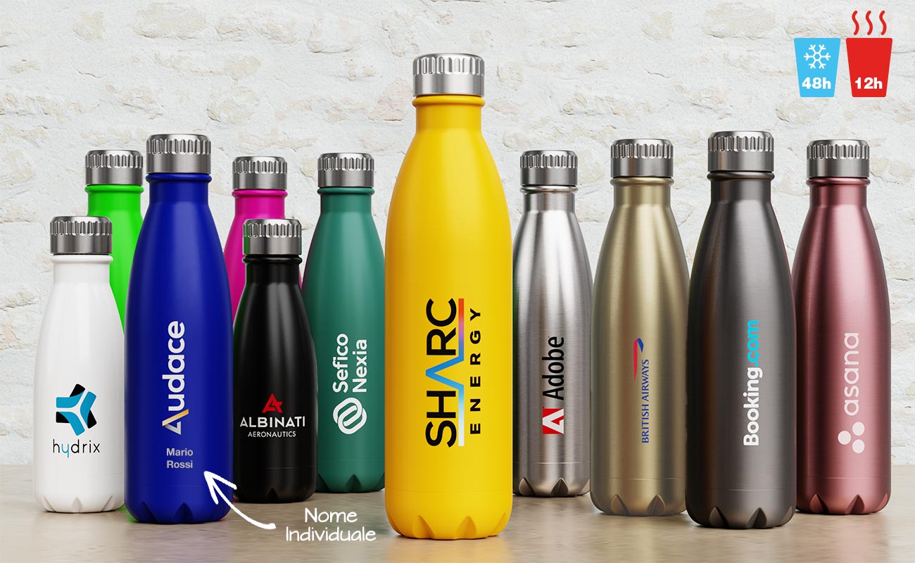 Il nome inciso fa sì che il nominativo individuale sia completamente indelebile. È perfetto per i club sportivi e le scuole, evitando qualsiasi potenziale scambio di borracce oppure tazze durante l'allenamento o la competizione. Ogni nome individuale affiancherà il tuo logo e slogan su ogni prodotto da te scelto nella categoria Drinkware.
