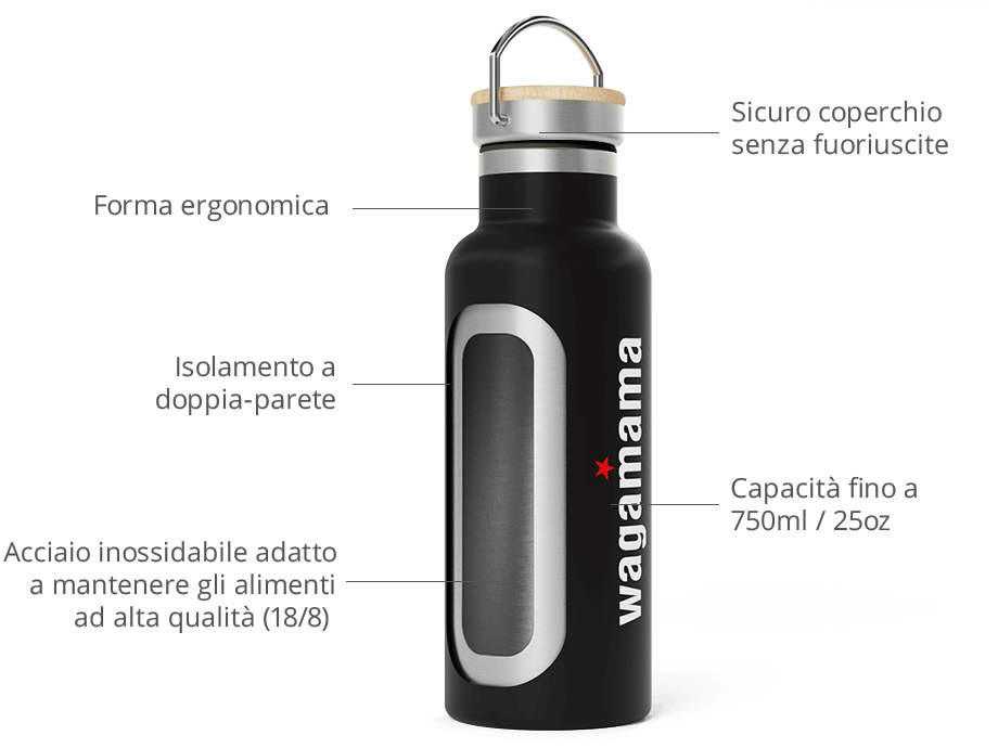 Potete scegliere tra i formati da 500ml/17oz e 750ml/25oz, tutti privi di sostanze chimiche nocive, e sottolineare l'impegno della vostra azienda per un futuro più verde fornendo un'alternativa ecologica alle bottiglie di plastica usa e getta.