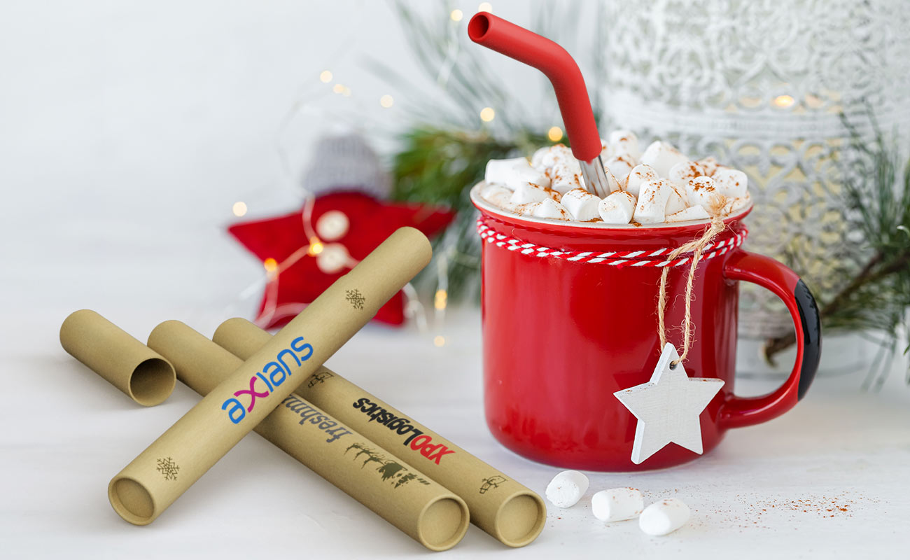 Chiedi informazioni sul nostro accessorio natalizio in edizione limitata Tubo con Cannuccia di Natale – un'idea regalo molto apprezzata per dipendenti e clienti. Puoi scegliere tra una gamma selezionata di motivi festivi da abbinare al tuo logo e messaggio aziendale.