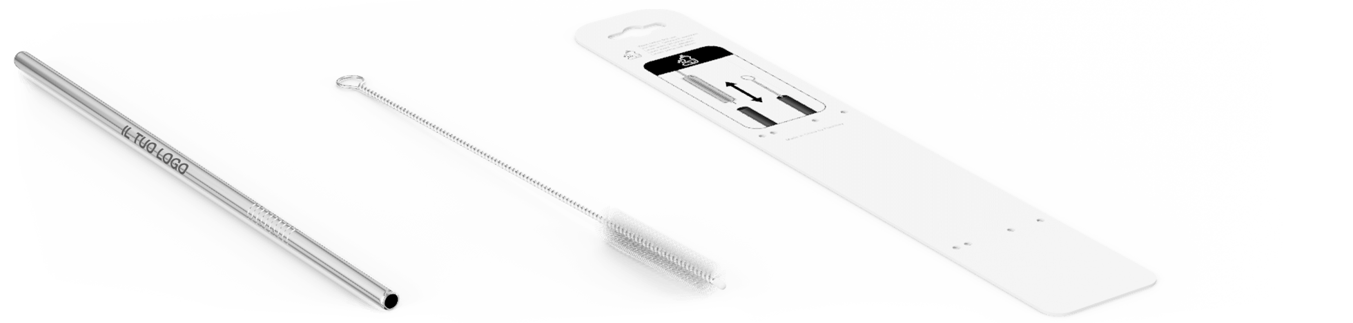 La cannuccia in metallo riutilizzabile Straight ha un'area di stampa dedicata che può essere incisa al laser con il tuo logo in dettagli super precisi. Ogni cannuccia è fissata a un supporto di cartone per una facile distribuzione alla prossima conferenza o evento e viene fornita anche con un pratico pulisci cannuccia.