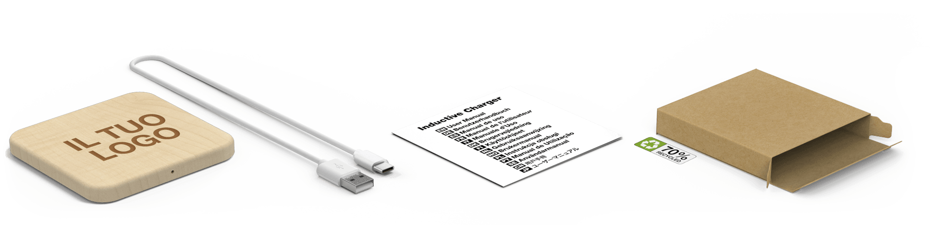 Il nostro caricabatterie wireless Forest è un eccellente regalo aziendale, un premio per le fiere o uno strumento di marketing interno, in particolare per riflettere i valori di sostenibilità del vostro marchio. Grazie al nostro servizio di serigrafia professionale, possiamo riprodurre il vostro logo o slogan in modo vivace e di alta qualità fino a 4 colori, assicurando che il vostro disegno risalti magnificamente sulla superficie in legno d'acero.