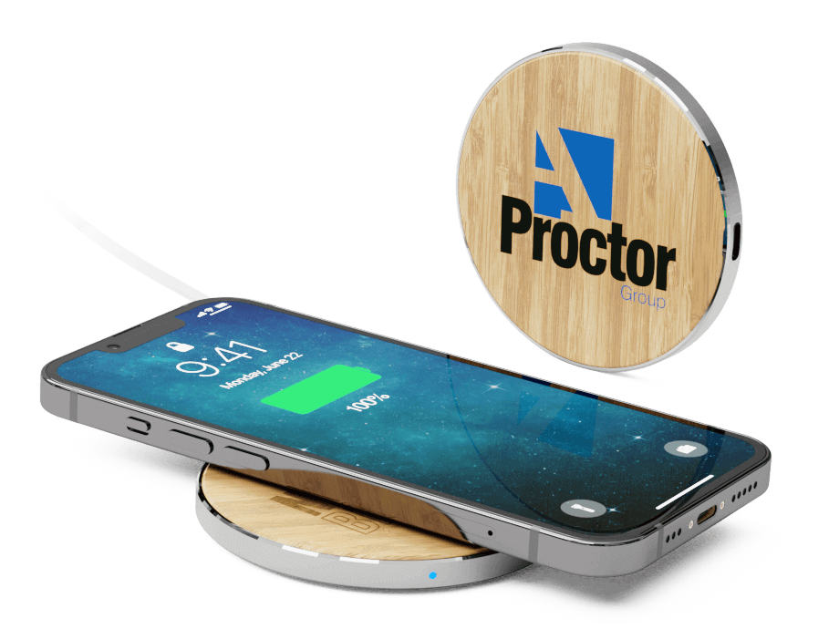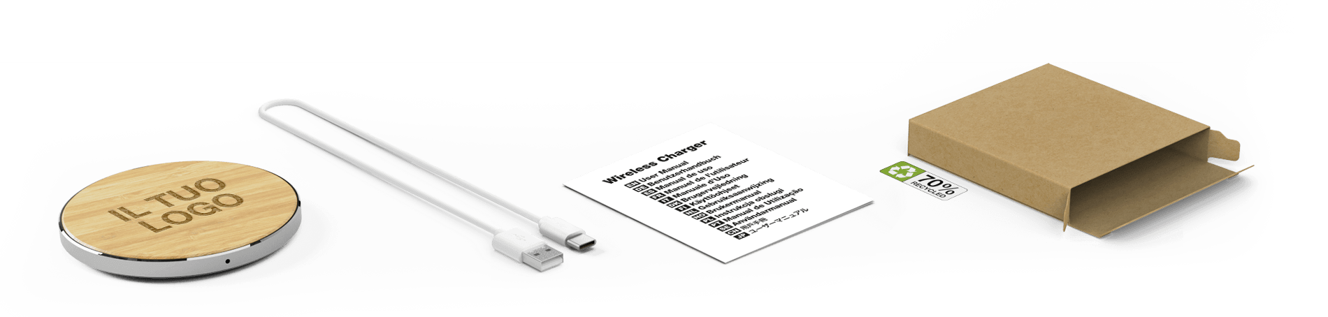 La finitura naturale in legno di bambù crea un contrasto sorprendente con le immagini vivaci del marchio, allineando la vostra azienda con i valori ecologici. Scegliete il nostro servizio Individual Naming per creare caricabatterie wireless personalizzati per l'ingresso di clienti o dipendenti. In alternativa, numerate le unità per raccogliere dati per la vostra prossima fiera o evento. Il caricabatterie wireless Ring fa anche parte dei nostri nuovi merch pack, perfetti come regalo per dipendenti e clienti!