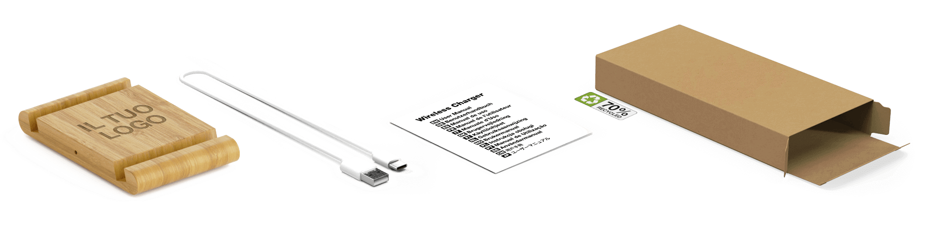 Il nostro caricatore wireless Terra è realizzato in uno splendido legno di bambù, pronto per essere personalizzato con il vostro logo. Con le sue linee morbide e le sue curve eleganti, Terra si trasforma anche in un pratico supporto per il telefono, rendendolo un articolo da regalare ai clienti, al personale o ai partecipanti a un evento. Contattateci oggi stesso per conoscere i prezzi aggiornati, i tempi di consegna rapidi e le informazioni relative alla personalizzazione.