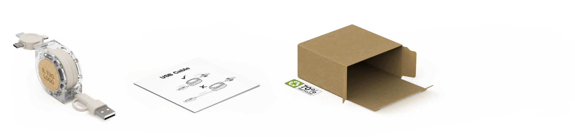 Il cavo è realizzato in bio-plastica di paglia di grano, offrendo una soluzione ecologica che si allinea alle pratiche sostenibili del vostro marchio. L'area di stampa è realizzata in legno certificato FSC per continuare il tema della sostenibilità. Compilate un Quick Quote oggi stesso per ricevere un listino prezzi personalizzato e iniziare a personalizzare i vostri mozzi Motion Wood!