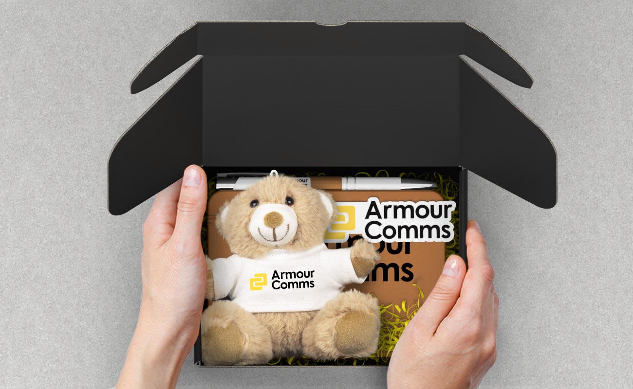 La Bear Box S è una simpatica idea di Merch Pack che contiene il nostro popolare orsetto Paws, una penna a scelta, un adesivo e il nostro taccuino Softy, tutti pronti per essere personalizzati con il vostro logo e altro ancora. Anche la confezione regalo può essere personalizzata con il vostro logo. Contattateci oggi stesso per conoscere i nostri prezzi più recenti, i tempi di consegna rapidi e le informazioni sulla personalizzazione.