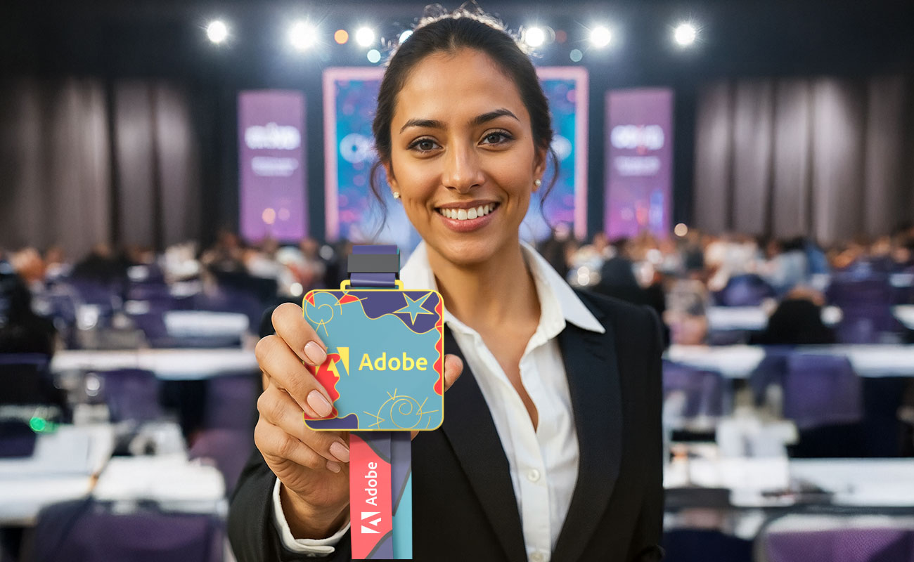 - Aggiungete il vostro logo e messaggio al laccetto da collo