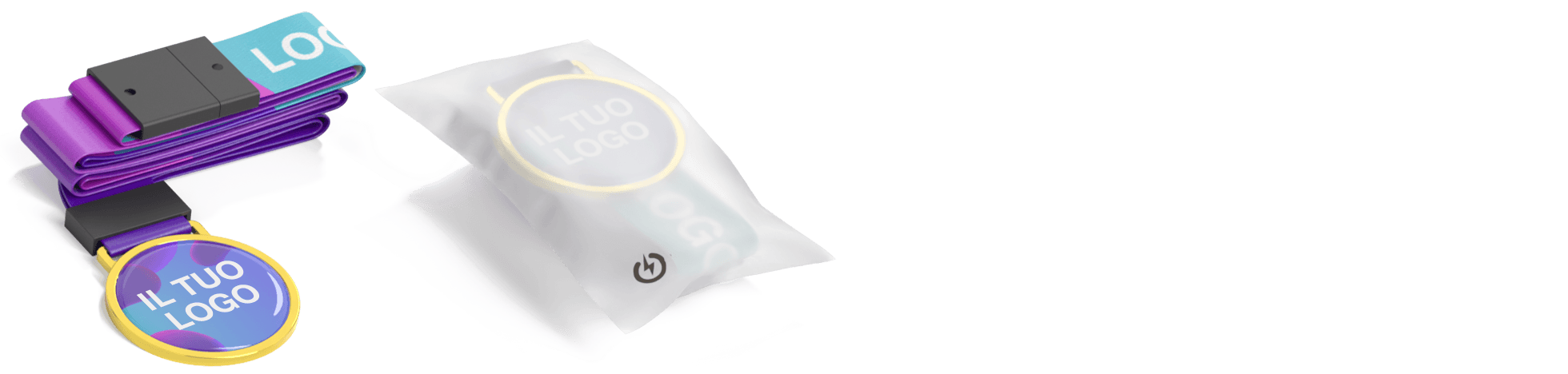 - Aggiungete il vostro logo e messaggio al laccetto da collo