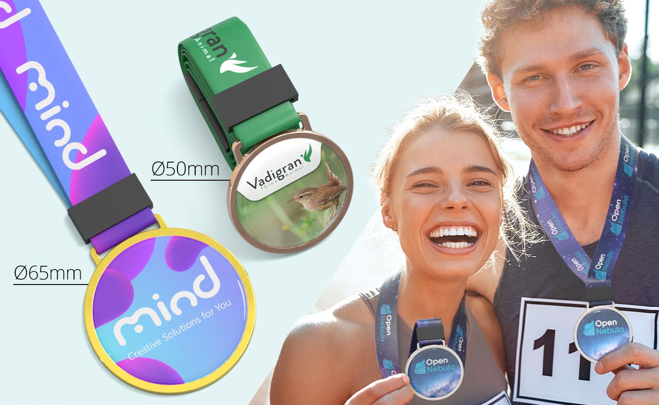 Elite è una medaglia personalizzata di qualità superiore, creata per presentare il vostro brand o evento in modo audace e raffinato. È caratterizzata da una stampa fotografica di alta qualità che dà vita al vostro disegno con dettagli nitidi, sfumature omogenee e una riproduzione vibrante a colori. Al centro della medaglia si trova un'area dedicata alla personalizzazione, dove il vostro logo o la vostra opera d'arte vengono visualizzati in modo chiaro e preciso. Anche il cinturino di accompagnamento è pronto per essere stampato. Il design della medaglia è protetto da un rivestimento in resina trasparente, che le conferisce una finitura lucida e brillante e la protegge da graffi e usura generale. Le medaglie Elite sono disponibili in due misure - 50 mm o 65 mm di diametro - che consentono di scegliere la misura migliore per il proprio evento. È inoltre possibile scegliere tra finiture in oro, argento o bronzo, che le rendono ideali per premiare i risultati del 1°, 2° e 3° posto.