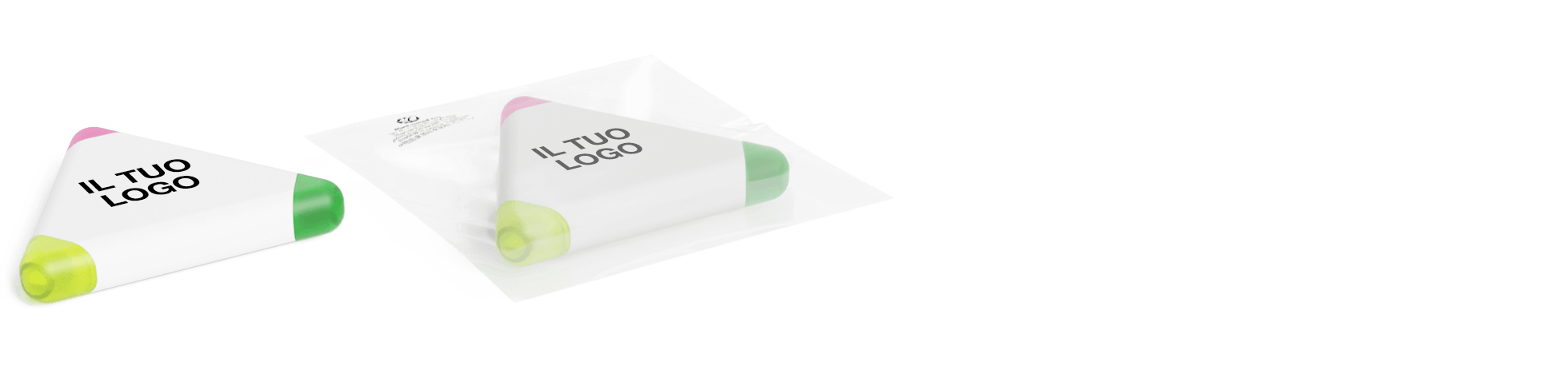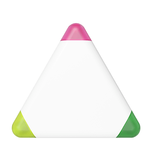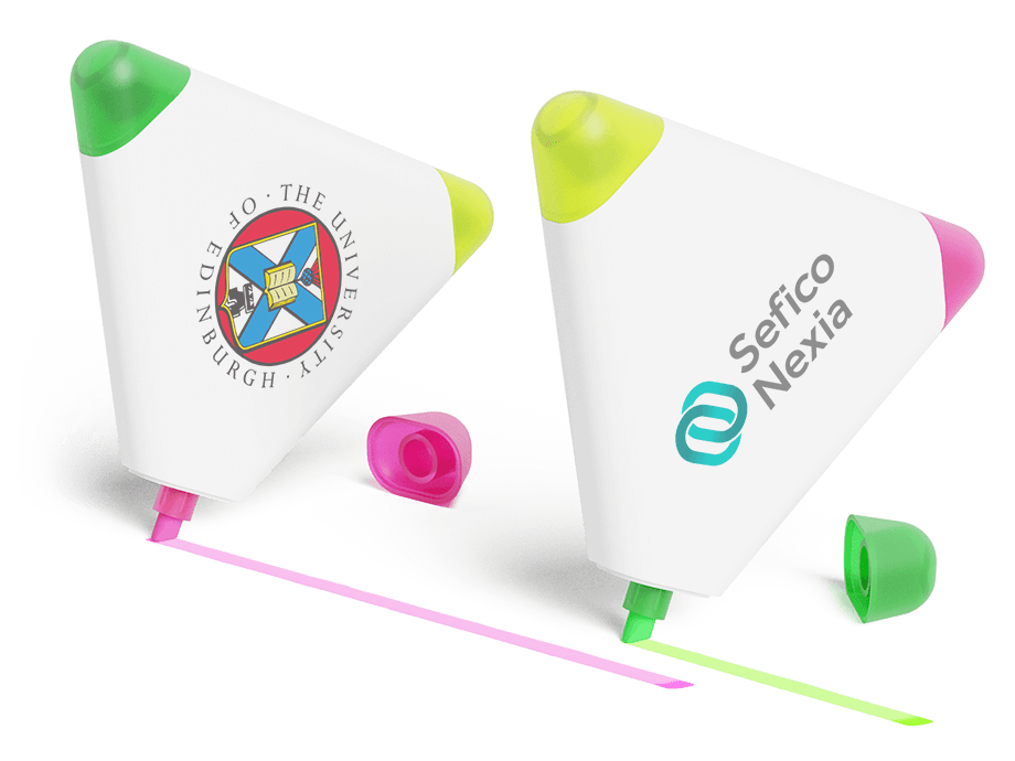 La nostra penna evidenziatore Triple offre 3 evidenziatori diversi in un unico modello: giallo, verde e rosa. La forma triangolare accattivante la rende anche un articolo promozionale estremamente popolare. Possiamo aggiungere il tuo logo, slogan e altro su entrambi i lati, offrendoti una fantastica visibilità del marchio su un prodotto che sarà conservato e utilizzato frequentemente.