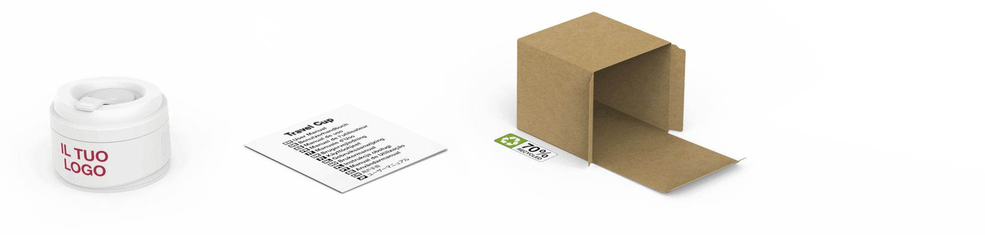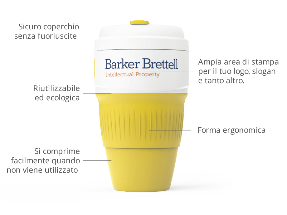 Oltre ad aggiungere il vostro marchio a questa tazza da viaggio ecologica, potete scegliere tra 8 colori standard da abbinare ai colori del marchio della vostra azienda'